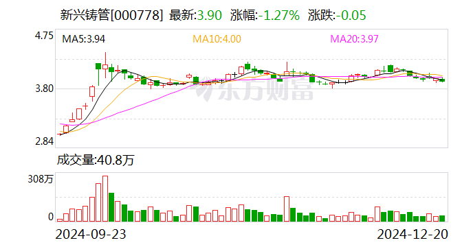 新兴铸管(SZ000778,收盘价:3.9元)12月20日晚间发布公告称,新兴铸管股份有限公司控股股东新兴际华集团有限公司基于对新兴铸管未来发展前景的信心及中长期价值的认可,计划自本次增持股份计划公告披露之日起6个月内,通过深圳证券交易所允许的方式增持新兴铸管A 股股票,累计增持总金额不低于人民币1.5亿元(含),不超过人民币3亿元(含),且不超过上市公司总股本的2%。本次增持计划实施前,增持主体持有新兴铸管约15.95亿股A 股股份,占公司已发行总股本的39.97%。