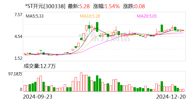 财中社12月20日电*ST开元(300338)发布关于公司收到法院延长预重整期限通知书的公告。湖南省长沙市中级人民法院已准许债权人对公司提出的预重整申请,延长预重整期间1个月,以妥善衔接公司预重整和重整程序,维护企业营运价值及债权人合法权益。