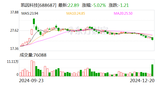 12月19日,凯因科技(688687)及其时任董事长兼总经理周德胜、时任财务负责人郭伟因收入核算管理不到位被监管警示。
