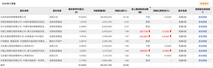 截至2024年三季度,凯因科技第一大股东为北京松安投资管理有限公司,持股3840万股,持股比例达22.46%。中庚价值领航、中庚价值先锋、易方达科翔分别持股2.54%、2.07%、1.99%。