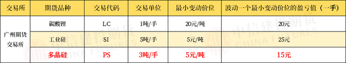 交易单位:1手多晶硅期货合约