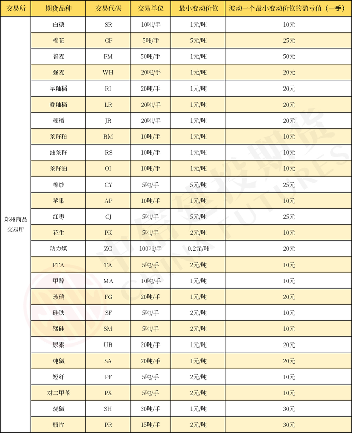 波动一个最小变动价位的盈亏值:3吨/手×1元/吨=3元/手