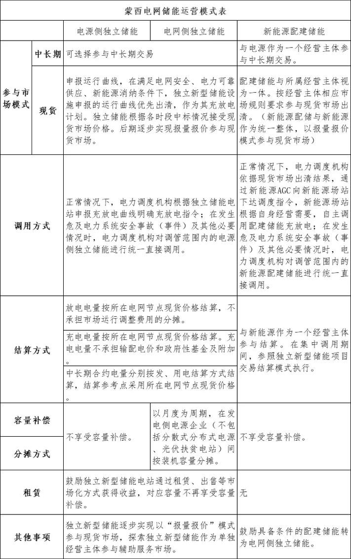 3.蒙东电网储能运营模式表