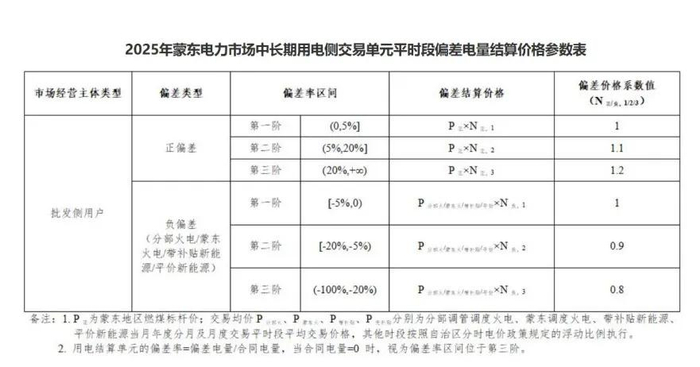 1.2025年蒙东电力市场中长期用电侧交易单元平时段偏差电量结算价格参数表