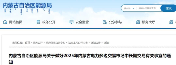 涉及保量保价、储能等!内蒙古关于做好2025年蒙东、蒙西多边交易市场中长期交易有关事宜的通知