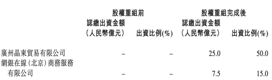 其中,广州晶东贸易有限公司、网银在线(北京)商务服务有限公司为京东集团旗下主体企业,两家公司将分别出资25亿元和7.5亿元,合计持有捷信消费金融65%的股份,而原股东Home Credit N.V(捷信集团)的持股比例将压缩至2%。