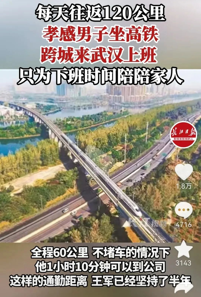孝感男子坐高铁跨城来武汉上班”