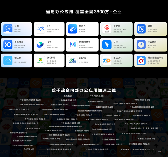 其一,与一些部门、省市签约,先协同开发标杆政企应用。比如个人所得税App、北京市的“京办”、 上海市的“随申办”、浙江省的“浙里办”。