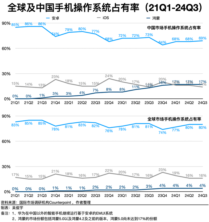 这相当于要重起炉灶。截至2024年三季度,鸿蒙全球市场份额为4%,位居第三,仅次于安卓和iOS;在中国市场份额为17%,位居第二,仅次于安卓,已超过iOS。然而,原生鸿蒙又要从零开始做起。