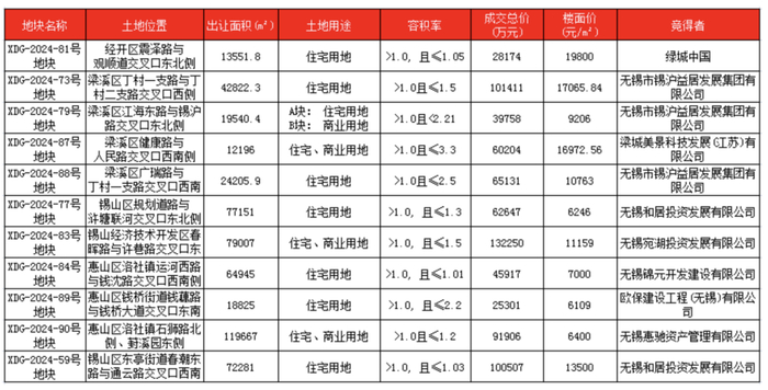 江苏省无锡市2024年土地拍卖收官。