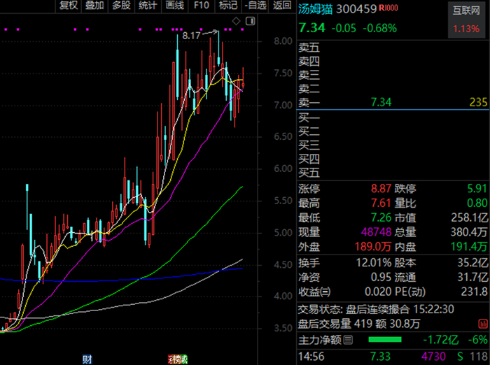 汤姆猫拥有时下多个热门题材,包括腾讯概念+阿里概念+华为鸿蒙+人工智能等。作为AI应用代表性股票之一,汤姆猫近期股价表现亮眼,一度从3元/股上方飙升至近期最高的8元/股上方。