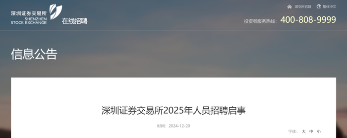 2024-12-20深圳证券交易所2025年人员招聘启事