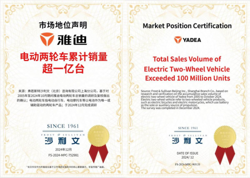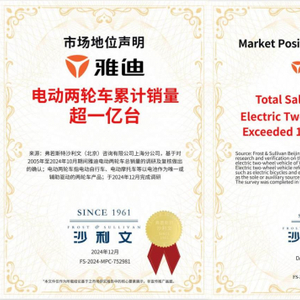 超一亿台,这是全球著名市场咨询机构弗若斯特沙利文(Frost & Sullivan,下称“沙利文”)对雅迪全球累计销量的最新测算。