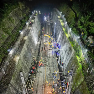 重庆北站作为既有特等站,主要承担郑渝高铁、沪蓉铁路、渝怀铁路等干线运输客运业务。受成渝中线高铁引入重庆北站工程影响,渝怀铁路将双线改为单线运输,封闭下行线,为人和隧道改建施工提供条件。经过8个多月的鏖战,施工已全部完毕。