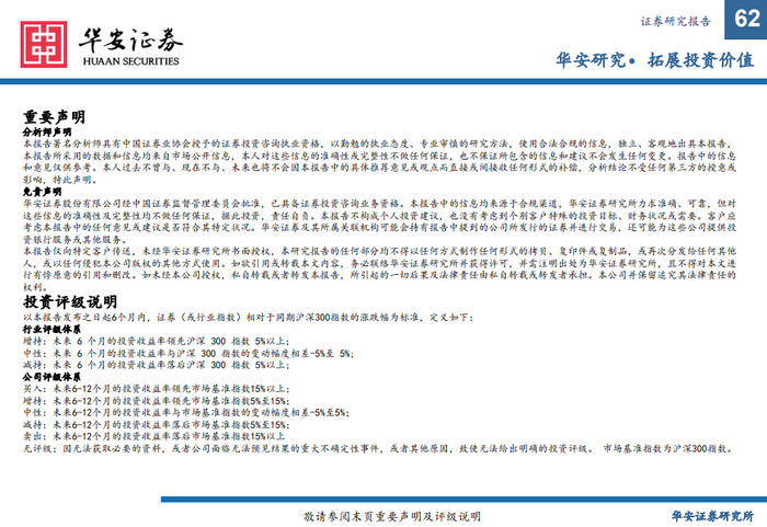 华安证券股份有限公司经中国证券监督管理委员会批准,已具备证券投资咨询业务资格。本报告中的信息均来源于合规渠道,华安证券研究所力求准确、可靠,但对这些信息的准确性及完整性均不做任何保证,据此投资,责任自负。本报告不构成个人投资建议,也没有考虑到个别客户特殊的投资目标、财务状况或需要。客户应考虑本报告中的任何意见或建议是否符合其特定状况。华安证券及其所属关联机构可能会持有报告中提到的公司所发行的证券并进行交易,还可能为这些公司提供投资银行服务或其他服务。