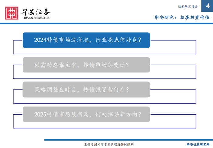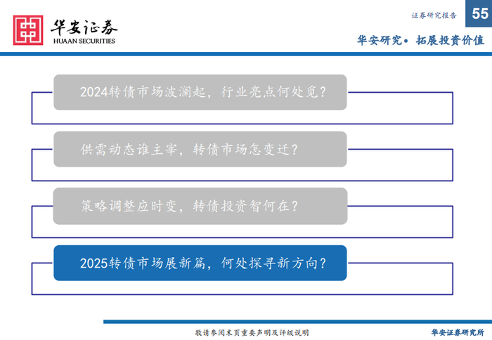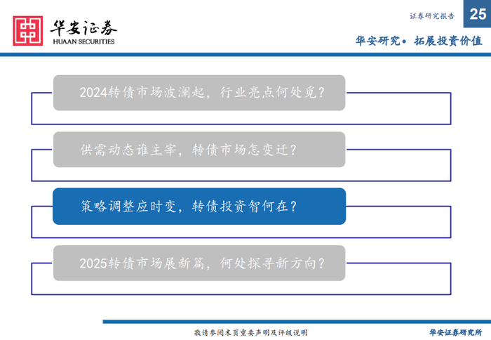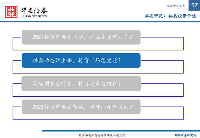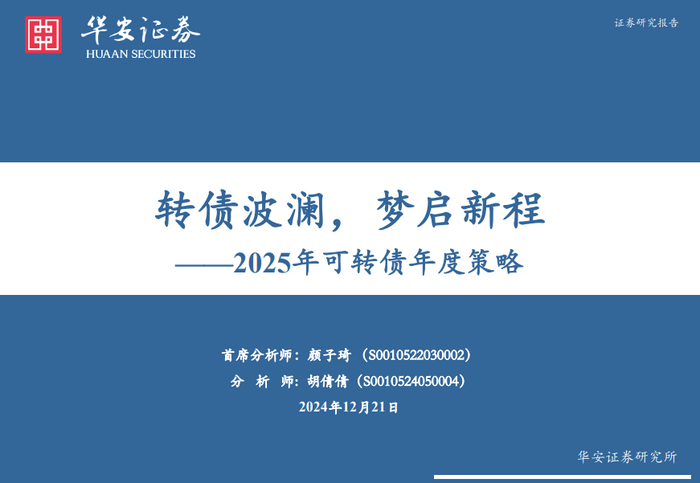 本文内容节选自华安证券研究所已发布报告:转债波澜,梦启新程——2025年可转债年度策略》(发布时间20241221),具体分析内容请详见报告。若因对报告的摘编等产生歧义,应以报告发布当日的完整内容为准。
