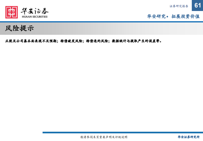 正股及公司基本面表现不及预期;转债破发风险;转债违约风险;数据统计与提取产生的误差等。