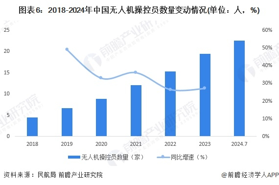 2024年7月10日,在国新办举行的“推动高质量发展”系列主题新闻发布会上,民航局公布的最新数据指出,目前持有无人机操控员执照的人数已超过22.5万人,无人机操纵员数量增长十分迅速。