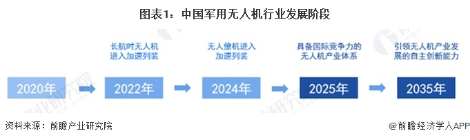 2018年11月,中国航空工业集团有限公司于发布了《无人机系统发展白皮书(2018)》。其中提出,到2025年,航空工业将建立高端突破、体系完备、能力要素健全的无人机系统装备体系,建成核心能力突出、产品谱系完备、全面开放融合、具备国际竞争力的无人机系统产业体系;到2035年,在无人机关键技术产品领域达到世界一流水平,具备引领无人机产业发展的自主创新能力,满足建设世界一流军队的需要,同时要在国际防务市场具有突出的竞争优势和一流的品牌影响力,并在工业应用领域实现市场领先和产业化发展。