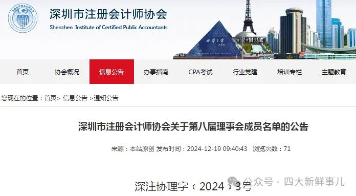 “四大”3人!深圳市注协最新理事会、监事会成员名单出炉