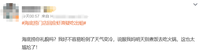 冲上热搜!海底捞回应虾滑疑吃出蛆,网友的评论亮了