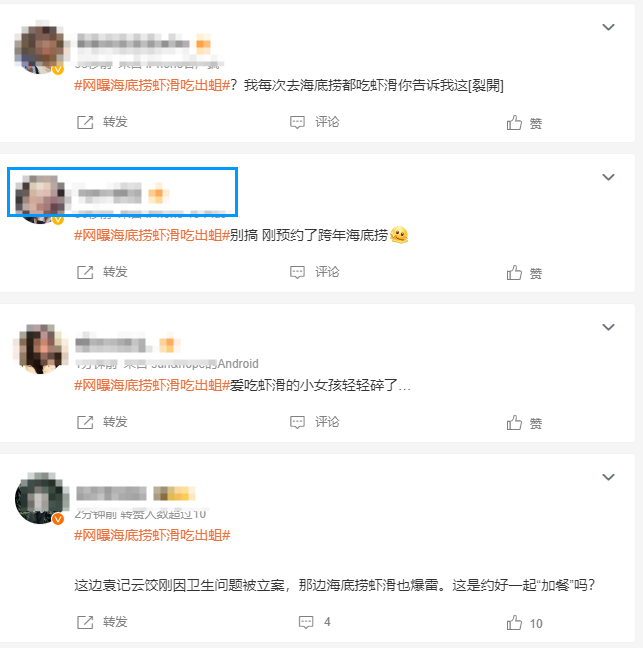 更有网友调侃,袁记云饺刚因卫生问题被立案,海底捞虾滑也爆雷了,这是约好一起“加餐”吗?