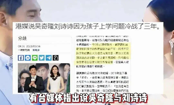 此前,吴奇隆、刘诗诗多次传出婚变的消息,但当事人均未进行回应。