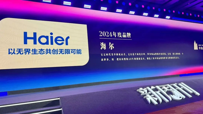 2024中国年度新锐榜发布,今年“年度品牌”由海尔获得。