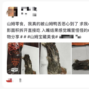 据了解,该款鸭舌为山姆自主品牌。网友称拆开包装食用后,“感觉怪怪的”,再一看被吓了一跳,于是将照片发在了社交平台。