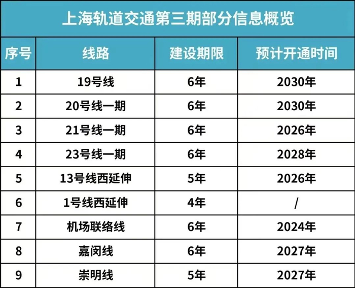 此外,除1号线西延段之外,上海轨道交通三期获得批准的地铁项目均已经开始施工。
