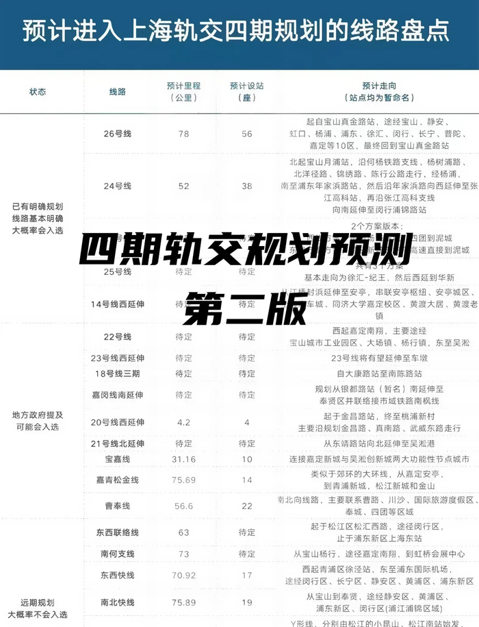 目前最新预测显示,有7条线路大概率会被选入,其中2条线路有望稳进四期规划。