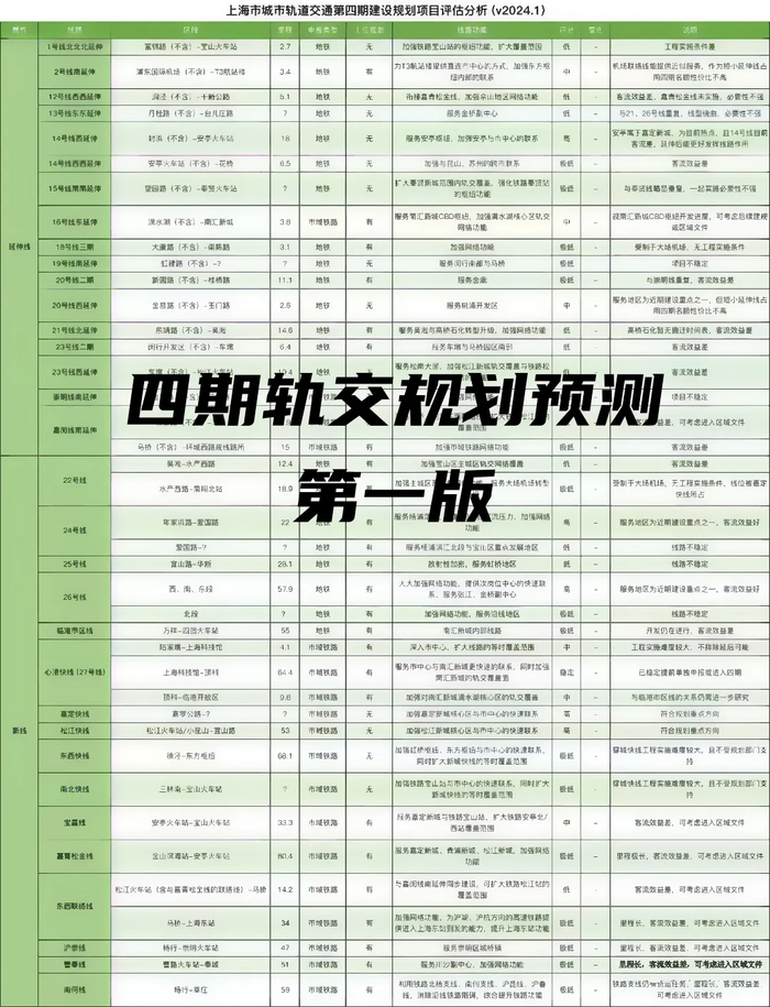 依照先前的预测,上海的第四期轨道交通规划预计会在今年提交,鉴于2022年末,上海已经大致确定了第四期建设规划的总体规模和初步项目构成。