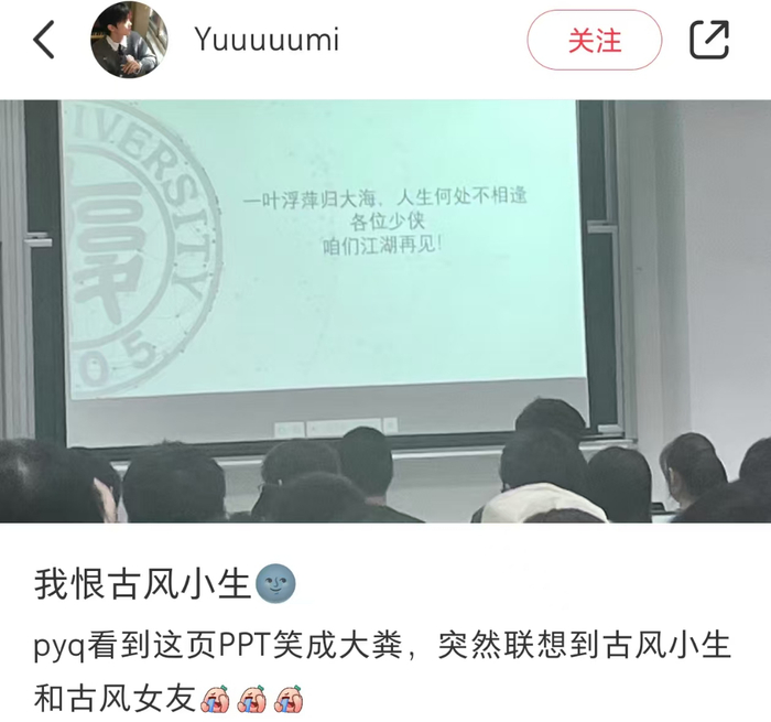 年轻人,尤其是期末周正缺乐子的大学生们迅速掌握了“古风小生”的说话套路,并开始结合生活场景开始组句。