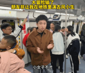 有博主玩大冒险输了被朋友抓着在地铁上念古风小生的词。