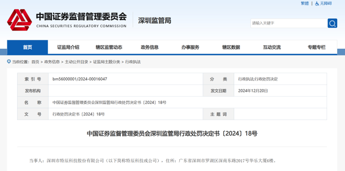 2024年12月20日中国证券监督管理委员会深圳监管局行政处罚决定书〔2024〕18号