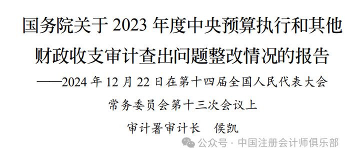 重磅!审计署发布2023年度审计整改报告