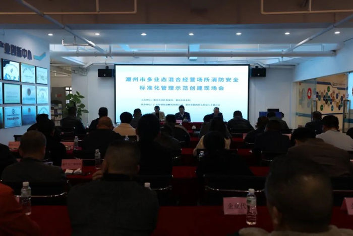 为全力防范化解重大安全风险,全面提升全市多业态混合经营场所消防安全管理水平,12月20日,潮州市多业态混合经营场所消防安全标准化管理示范点创建现场会在潮安区恒德国际召开。市消防救援支队、市商务局、市住建局、市市场监管局、市公安局、市文广旅体局、市教育局、市卫健局业务科室负责同志,各县(区)商务主管部门、住建、市场监管、公安、文广旅体、教育、卫健、消防救援大队分管领导,全市多业态混合经营场所负责人参加会议。