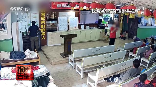 记者随后将调查情况反映给养生馆所在地的市场监管部门,在市场监管人员获取的养生馆监控视频里,记者看到,一位身着红色上衣的销售人员正在向老人们推销他们的保健床垫。