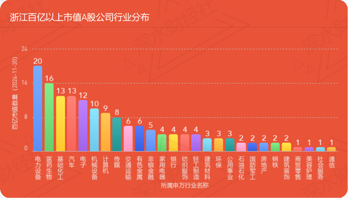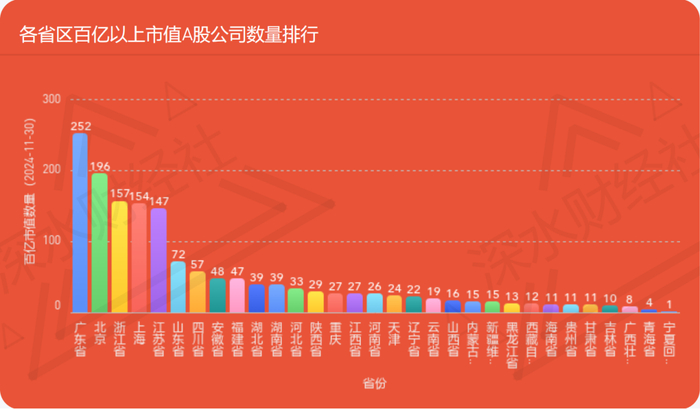 截至11月30日,浙江共有157家百亿市值A股公司,位居国内第三位。