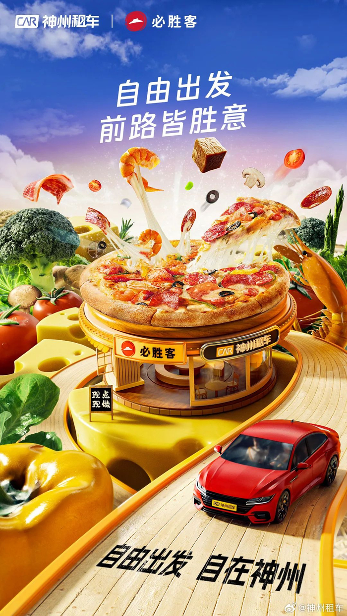 而在漫长的旅途中,神州租车为热爱出发的你带来了诸多惊喜,陪你一起自在出发!2024年12月18日-2025年1月5日,神州租车联合必胜客、COSTA、唱吧、海底捞、海合安集团、航旅纵横、黄油相机、骆驼、美图秀秀、洽洽、蜻蜓FM、淘票票、腾讯视频、网易云音乐、喜马拉雅、小龙坎、优酷、元气森林18家品牌,发起了一场「年终狂欢趴」!