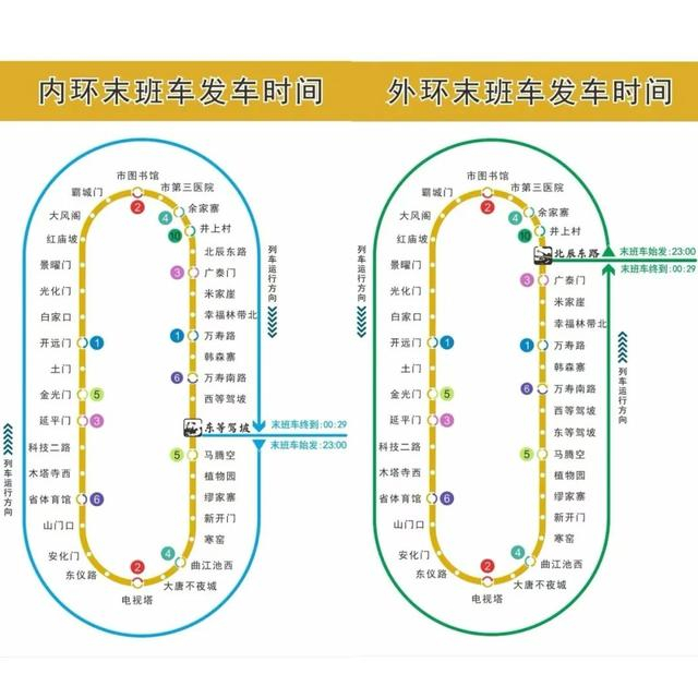 地铁8号(环)线内环列车按照顺时针方向行车,外环为逆时针方向行车。因此,地铁8号(环)线的乘车方式与既有的线路有所不同,乘客出行时须留意内环、外环运行方向。(新闻回顾:开通在即!西安地铁8号环线乘车指南→)