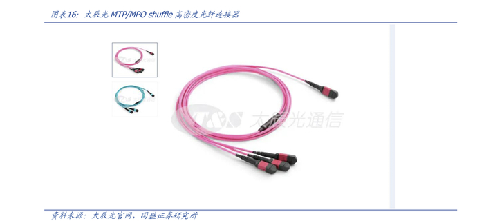 光互联厂商过去产品主要以光纤连接器为主,传统数据中心中使用多数使用陶瓷插芯。随着AI需求的放量,光模块速率的大幅度提升,也对光纤连接器产品提出了新的要求,目前针对AI需求的光纤连接器已经升级至以MT插芯为主流的产品,而未来随着CPO技术的迭代,对于空间使用和密度的要求会进一步提升,需求将逐渐向MMC插芯升级,解决方案和产品形态也更加多样化,包括shuffle类的产品未来有望持续上量。具备持续技术布局、拥有客户基础的头部厂商将深度受益于本轮光互联的全新产业机遇。