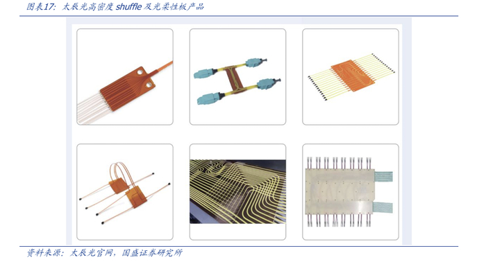 国内厂商中,太辰光在光互联领域有着深度布局,从基于陶瓷插芯到MT插芯再到MCC插芯的光纤连接器产品,到基于光柔性板的全光互联背板和Shuffle产品方案,公司提供了完整的光互联解决方案,客户也以北美为主,为海外重要客户提供高速光互联解决方案。目前,太辰光的光柔性板产品已经批量出货,并为多家客户开发了定制化的产品。