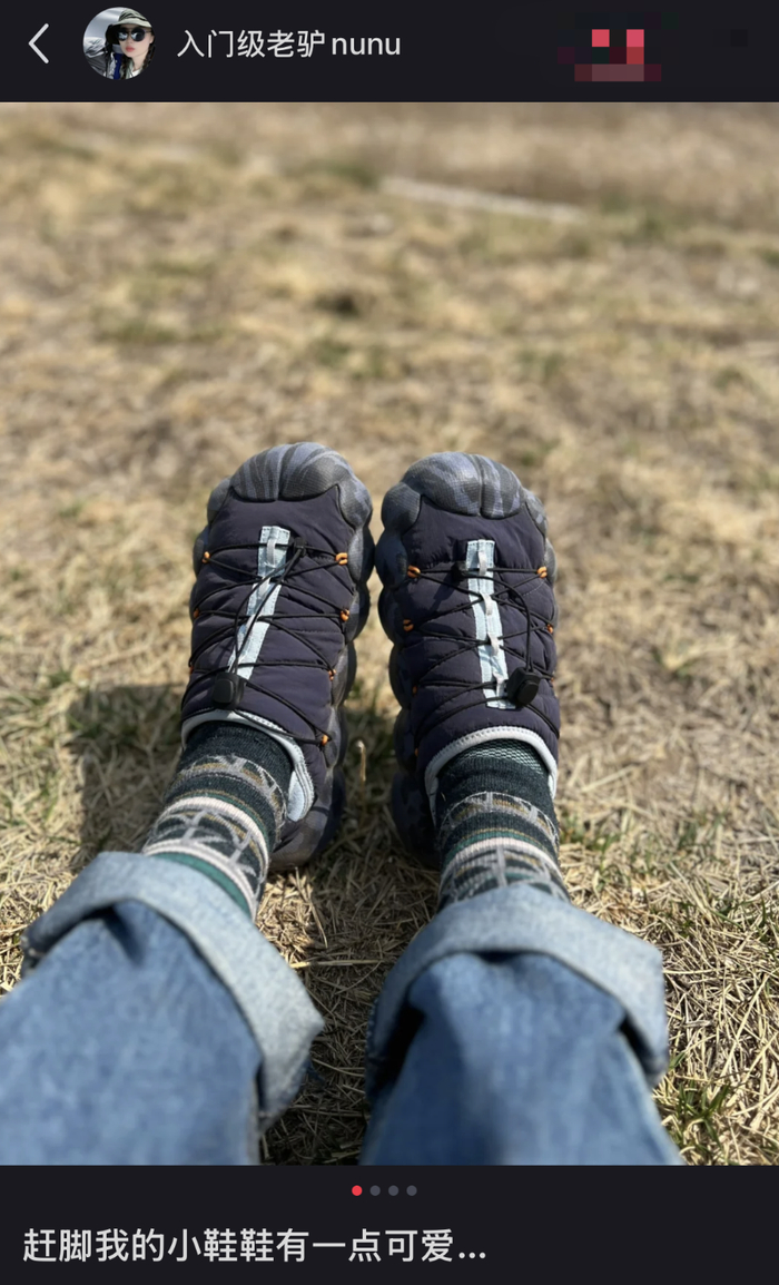 “其实这种鞋在冬天不算是最实用的,不太防水,也护不住脚踝,就是踩起来舒服。它就像那段我在旷野里的日子一样,别人可能看不懂,觉得我怎么就偏离了成功人生的既定轨道了,但这种‘无用’对我的治愈作用,只有我自己才能体会。”