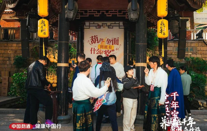 在千年养生酒简史展馆内,游客们了解传承千年的养生智慧;在千年养生活力场,先秦投壶、战国足球、唐代保龄球、宋代高尔夫、明朝帕梅拉五大非遗运动项目更是“硬控”一众游客;在千年养生宝藏馆,大家纷纷尝鲜探秘,AI中医体质问诊和三大宝藏探秘展成新晋“网红打卡点”;在千年养生国潮会现场,酒神踩高跷、送葫巡游、国风音乐会、国潮养生迪等项目层出不穷,游客们在轻松律动里狠狠拿捏“朋克养生”。