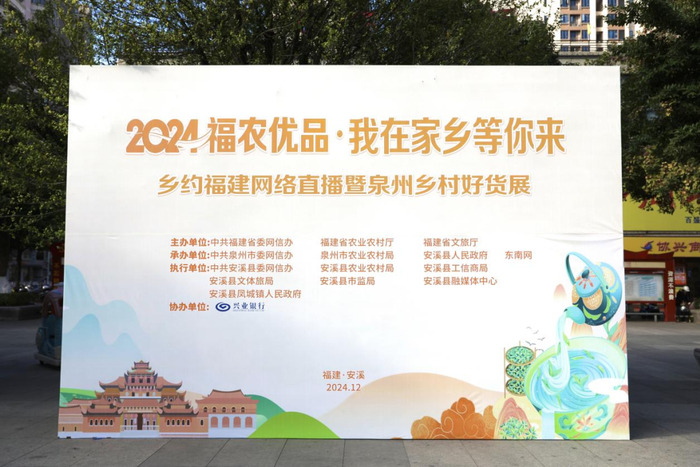 12月20日-21日,由福建省委网信办、省农业农村厅、省文旅厅主办,泉州市委网信办、泉州市农业农村局、安溪县人民政府、东南网承办,兴业银行协办的2024年“福农优品·我在家乡等你来”(第二季)乡约福建网络直播暨泉州乡村好货展活动在安溪县人民广场举办。