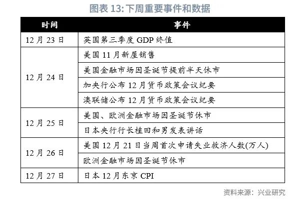 我们仍认为,2025上半年美国再通胀风险相对可控,下半年存在关税、移民劳动力减少、经济周期性复苏、减税等多个促使通胀回升的因素,再通胀风险较高。2025年上半年美联储仍有进一步降息的可能性;下半年降息窗口可能关闭,甚至可能出现美联储重启加息的市场预期。(分析详见《美联储2025上半年仍会降息,下半年降息窗口或关闭——评美联储12月议息会议》)