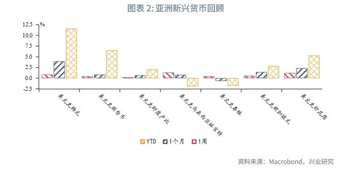 亚洲汇率方面,新兴市场货币整体相对美元贬值。其中,马来西亚林吉特、印尼盾等贬值幅度较大。泰国央行表示,泰铢波动主要源于外部因素,预计在短期内将继续呈现较高波动,央行将持续监测本币走势,必要时实施管理。