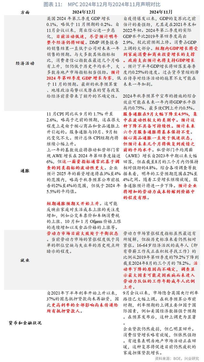 12月19日晚,英国央行货币政策委员会(MPC)以6:3的投票结果决定维持利率在4.75%不变。反对者支持降息25bp。这一分歧比市场预期更大。声明着墨于短期经济疲软、劳动力市场平衡,相比强调增长韧性、劳动力市场偏紧的11月会议立场有所软化。会后,市场对英央行降息前景的押注有所加码,英镑兑美元应声下跌。