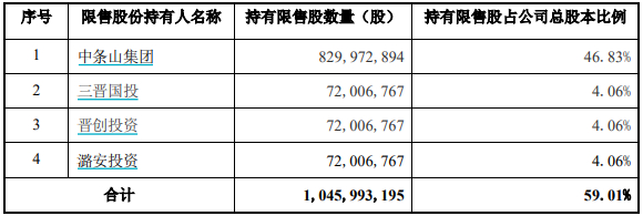 这是北方铜业三年前重大资产置换定向增发的股份,此次解禁的股东共四位,分别为中条山有色金属集团有限公司、上海潞安投资有限公司、宁波保税区三晋国投股权投资基金合伙企业(有限合伙)和晋创投资有限公司。